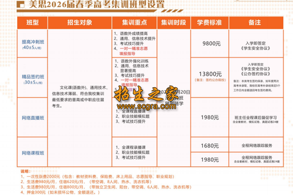 成都美思单招培训学校2026年单招集训签约班正在火热招生中,欢迎各位家长,同学们拨打我们学校联系电话详细咨询。吴老师咨询热线:18382252107!